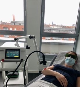 Wir setzen also unseren Hochleistungslaser über dem erkrankten Gewebe auf, die Strahlen treffen nur oberflächlich auf Ihre Haut, erzielen aber dennoch die gewünschte Tiefenwirkung.